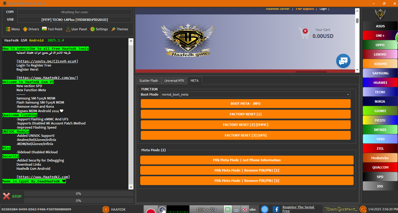 أداة Haafedk GSM هي برنامج متخصص يُستخدم في مجال صيانة الهواتف الذكية التي تعمل بنظام أندرويد تُساعد هذه الأداة الفنيين والمستخدمين المتقدمين على تجاوز حماية إعادة ضبط المصنع FRP وإجراء عمليات مختلفة على الأجهزة المحمولة الميزات الرئيسية لأداة Haafedk GSM تجاوز حماية FRP تُمكّن الأداة المستخدمين من إزالة قفل FRP بسهولة مما يسمح بالوصول إلى الجهاز دون الحاجة إلى بيانات حساب جوجل المرتبطة دعم متعدد للأجهزة